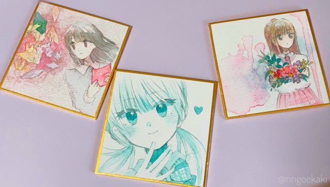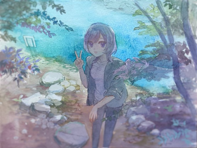 0 8 無題たち . #創作 #イラスト 透明水彩と岩絵具ちょっと 22/09/03 09:36