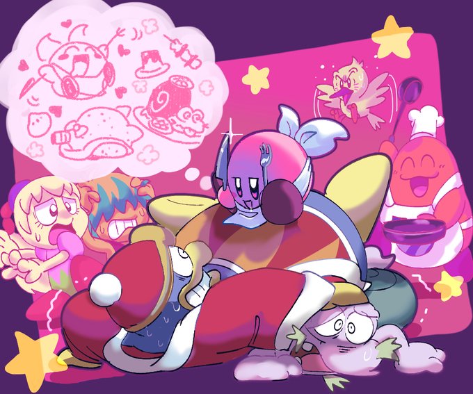 🐧「かかかカービィちゃん、ここここいつの肉のほうが柔らかくてうまいぞい!」 🐌「へ、陛下のほうが脂身たっぷりで美味しいでゲスよ~!!」