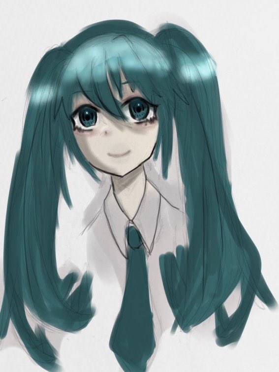 ミクちゃん描いたけど、似てなさすぎて泣きたい、けど少しは成長したはず 。だいたい五ヶ月 たってないくらいかな?#イラスト好きな人と繋がりたい #イラスト練習中 #イラスト #絵描きさんと繋がりたい #初音ミク #三連休はフォロワーさんが増える #成長してると思ったらRT