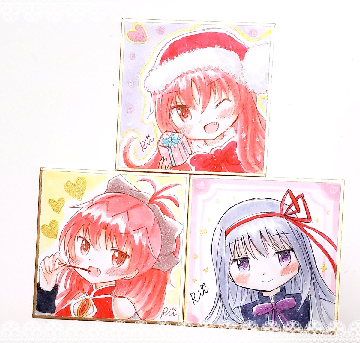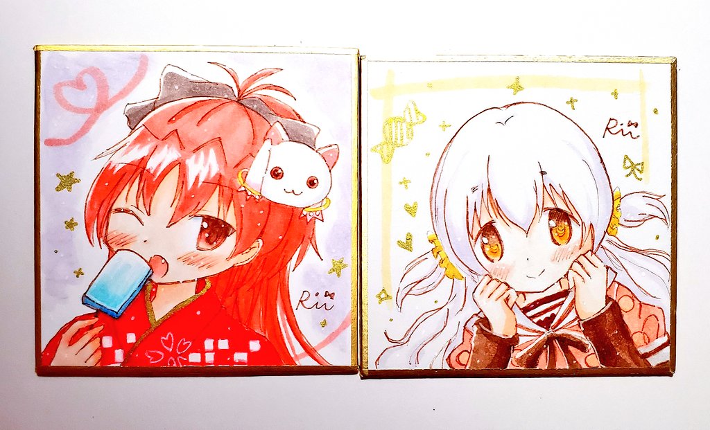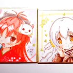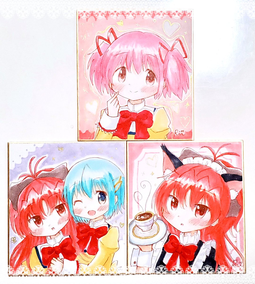 オーダー色紙で描かせていただいた小色紙と豆色紙です🌟 まどかとほむらも描けて楽しかったです☺️ありがとうございました!!🎀