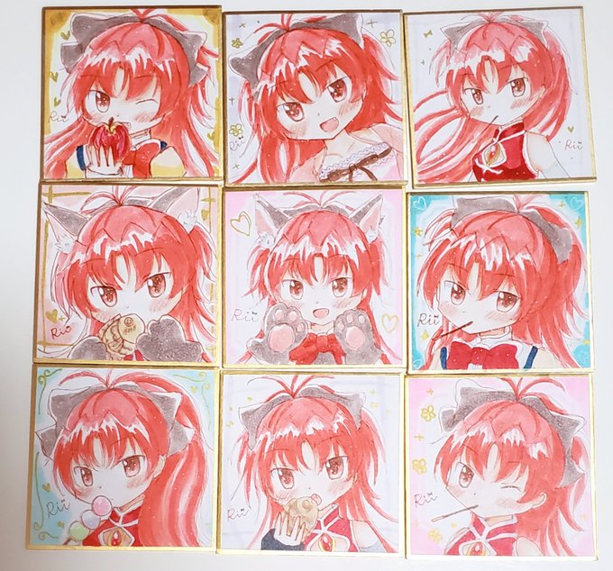 33 111 イラスト本のランダム色紙の一部ですー!魔法少女服、制服、パジャマ、猫耳など描きました🌟 22/05/02 17:17