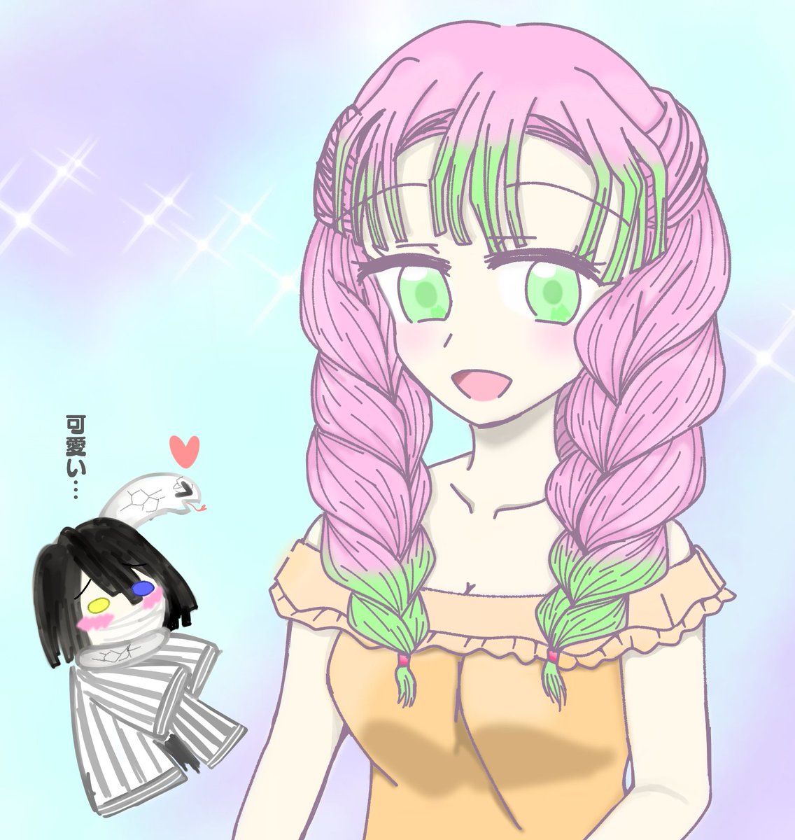 0 2 現代裝蜜璃 時間軸(?) (其實只是想畫可愛的蜜璃(⁎⁍̴̛ᴗ⁍̴̛⁎) #鬼滅の刃イラスト #甘露寺蜜璃 #伊黑小芭內 21/02/05 22:44