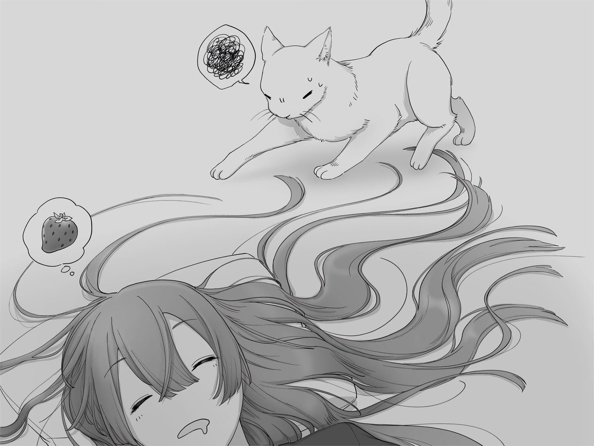 #長尾百景 🐱の日落書き 長尾の髪を絶対に踏まないむーちゃん。