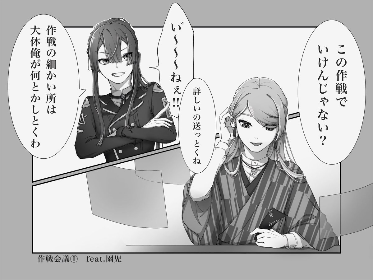 # いいねの数だけ漫画のコマ描くやつ④ (7/2346) 作戦会議 feat. ナガオゲン #長尾百景 #上弦画 ※二次創作