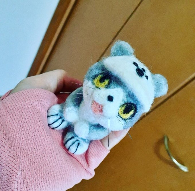前作ってた猫さん完成しました ✨ʕ ꈍᴥꈍʔ✨趣味で家の猫をモデルにして羊毛フェルトで人形をつくっています✨ 見ていただいてありがとうございます🙏 #羊毛フェルト #猫好きさんと繋がりたい