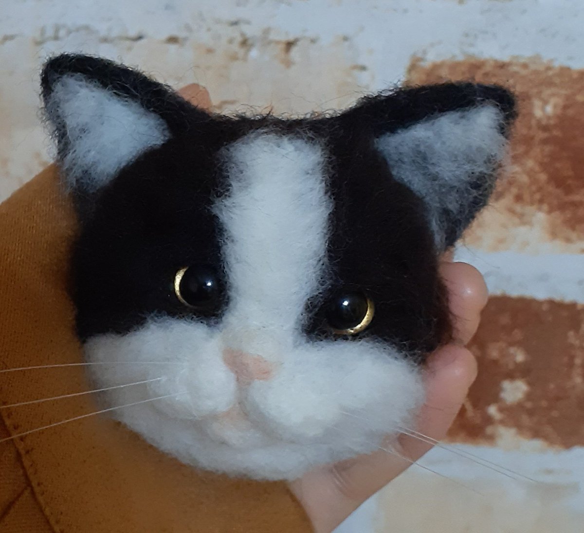 今18センチのお座りの猫を作っているのですが、ちょっと違うものを作りたくなってキジトラ猫のお顔を作ってみました😊トイプードルのチビちゃんもまた作ってみたいです。明日から仕事お休みで連休嬉しいです~☺️ #猫好き #羊毛フェルト #猫好きさんと繫がりたい