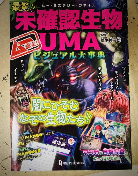 献本いただきました!ありがとうございます…! 2月21日から発売される「ムー認定! 最驚!! 未確認生物UMAビジュアル大事典 」にカラーイラストと漫画執筆させていただきました!よろしくお願いしますー! amzn.asia/d/bw9e4Bg