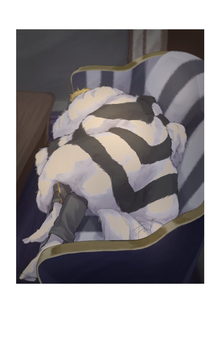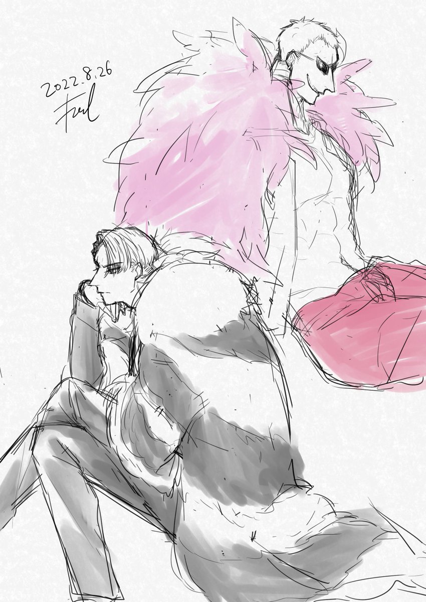 17 64 🦩と🐯/右腕if、捏造有 誕生日絵全然間に合わないし、過去絵みんな嬉しそうな顔描いてないから別の仕上げた…せっかくだからタグつけときます。若様が大好きだ~! #ドフラミンゴ誕生祭2022 22/10/23 01:18