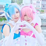 🎀🎀🎀リゼロ🎀🎀🎀 ✨💒ウェディング衣装🔔✨ レム🩵:みかど(@_mi_kado_ ) ラム🩷:りんりん 📸:からあげ様(@karaage0615 ) #マチアソビ #マチアソビ2023 #cosplay