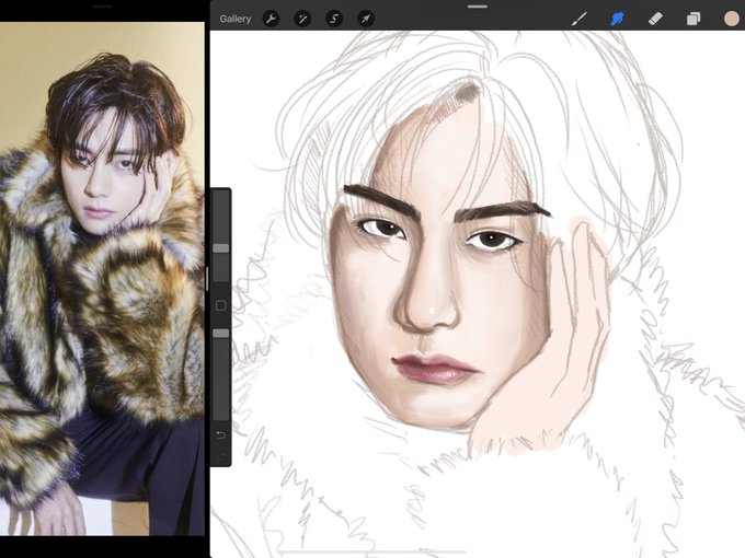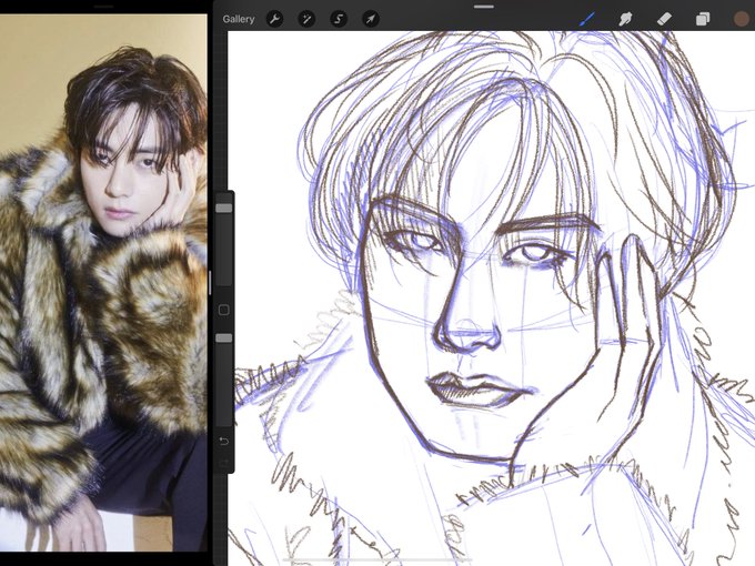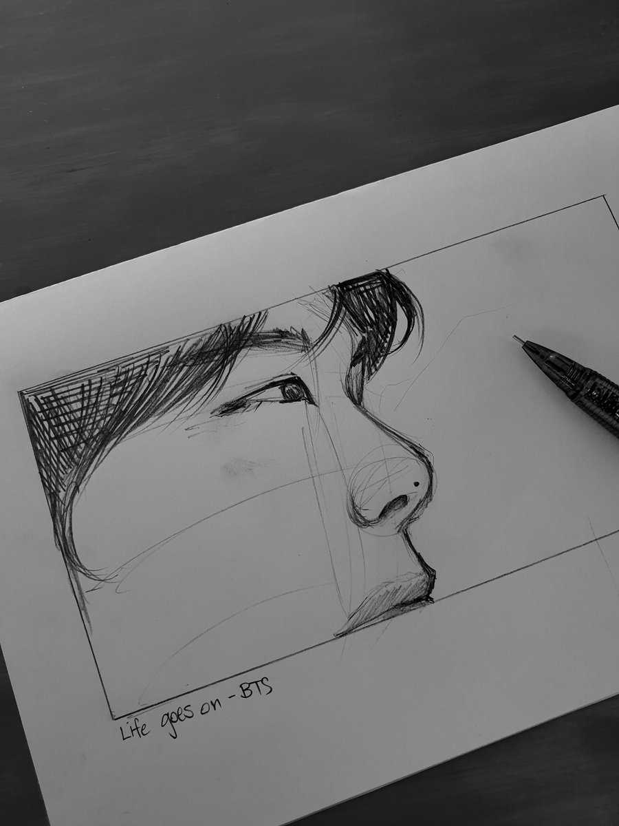 Quick Sketch of Taehyung - (ยังไม่ได้กลับบ้านเนย5555 เอาแบบนี้ไปก่อนนะคะ อิอิ 💗) #LifeGoesOnWithBTS #BTSV #btsfanart