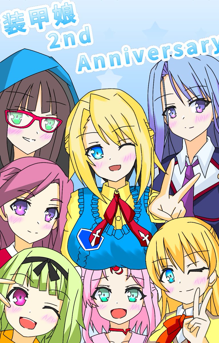 装甲娘2周年おめでとう㊗!! チームアテナスメンバーをお絵描きしました!! #装甲娘2周年