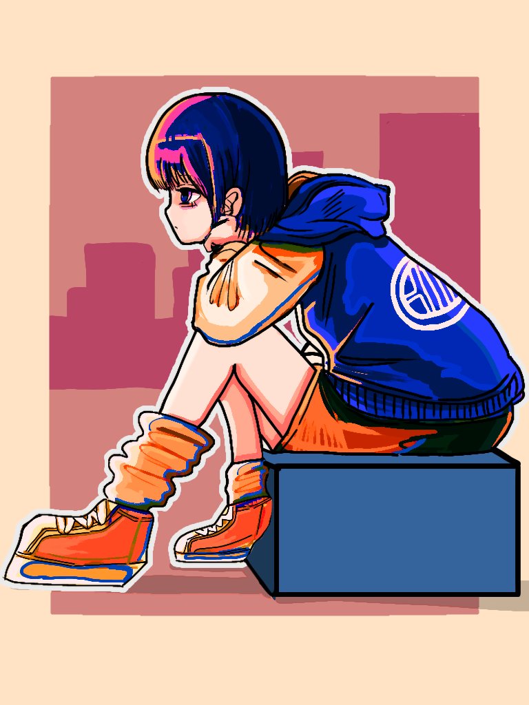 パーカーとスニーカーとバンソウコウ #絵 #イラスト #絵描きさんと繋がりたい #イラスト好きさんと繋がりたい #絵柄が好みって人にフォローされたい #秋の創作クラスターフォロー祭り #illustration #art #artwork #painting #drawing