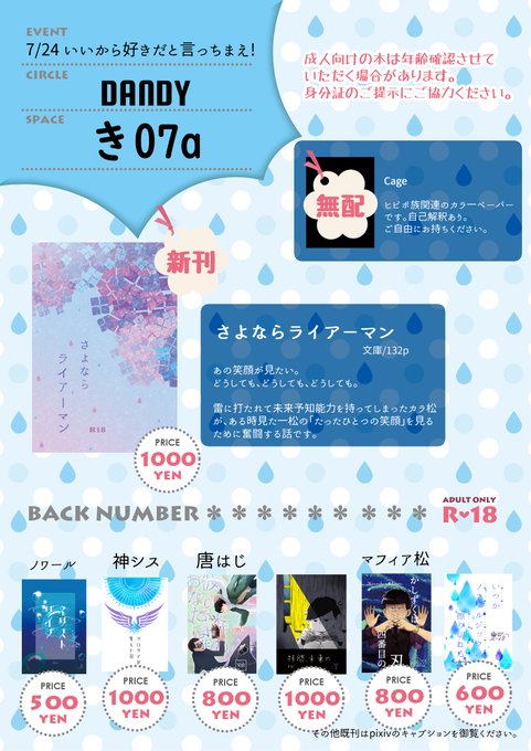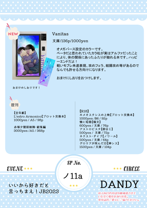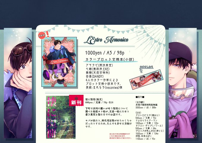 12/11 東6ラ10b「DANDY」です。お品書き投稿しました~ #pixiv pixiv.net/artworks/10341… twitter.com/rinya0204/stat…