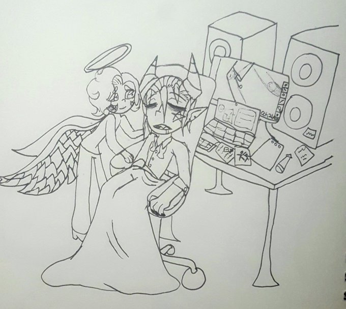 He finally crashed after 2 and a half days without sleep. #Inktober #inktober2020 #originalcharacter #demon #angel
