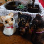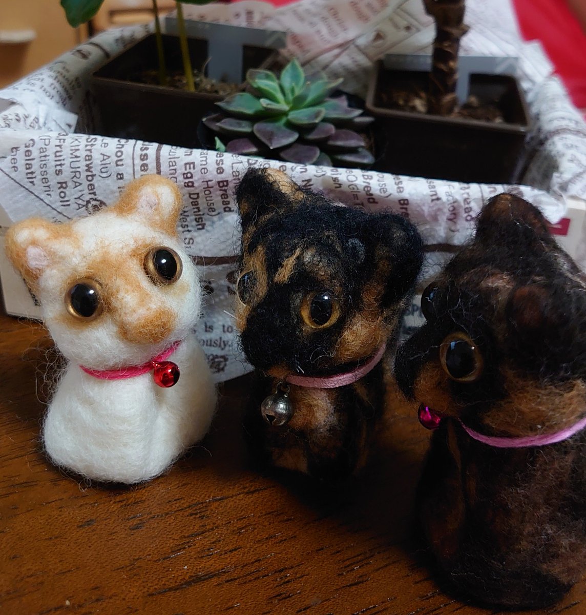 (;-ω-)ウーン 猫ちゃんたちの井戸端会議? 何の相談なのぉ( ̄▽ ̄)ニヤリッ 無心でちゅくちゅくw #羊毛フェルト #ウチの愛猫 に似せての羊毛 #ミロさん に似てなかった( ̄▽ ̄;)羊毛 #魔法使いアキット さんちのミロさん