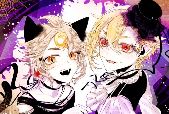 14 50 🐈⬛🥮くんと🦇四喜くん。 メイクと衣装はえびちゃんと金絲筍で! #弊空桑のハロウィン #食物語_fa 21/10/31 10:46