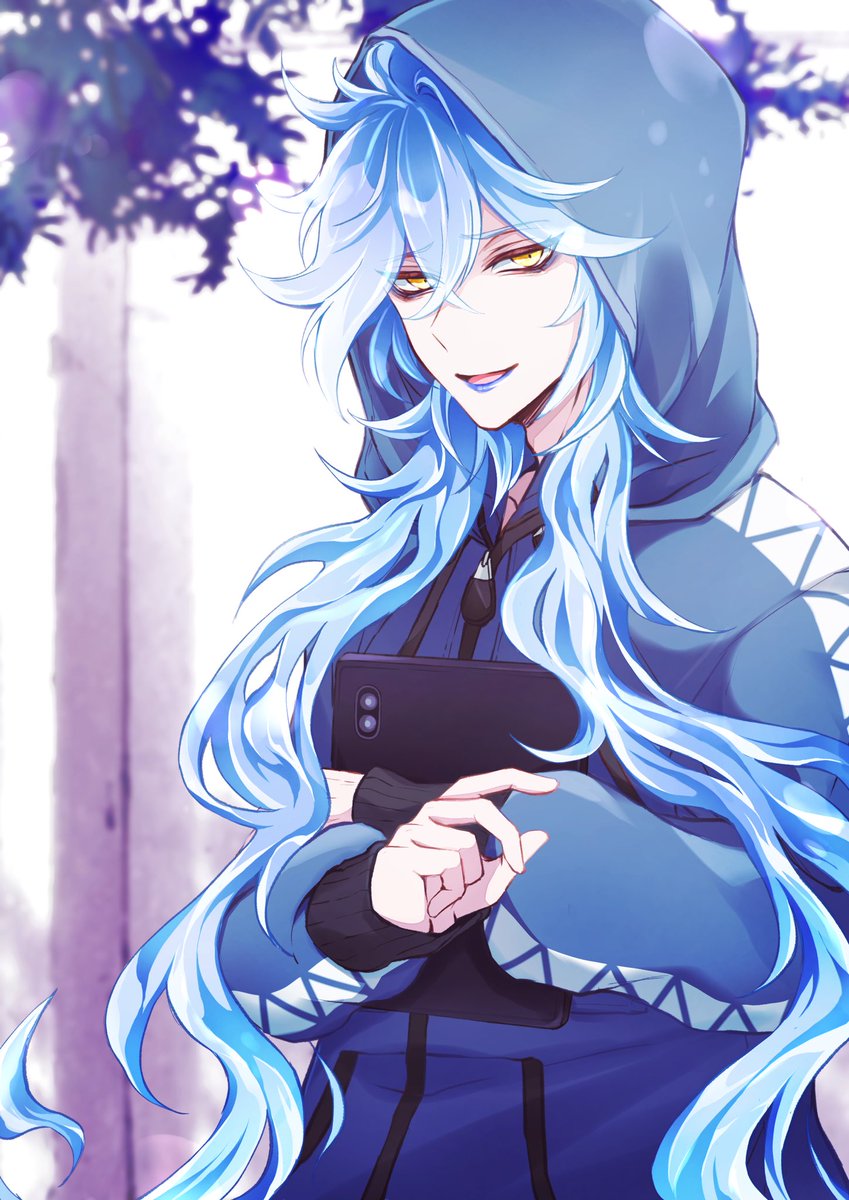 6章後は兄弟別々に授業を受ける様になったけど、校内でオルト君を見かけたら弟にだけ見せる優しい笑顔で控えめに手を振ってくれるイデア君(18) フードから出る長髪って最高ですよね!!?!? #ツイステファンアート