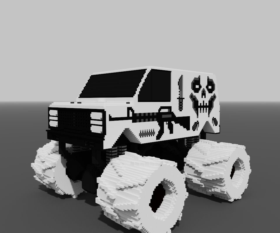 【新車納品のお知らせ】 Black and Grey テイストのバチバチ系Monster Truck💀男らしさの塊野郎🚬 本日5/7 PM10:00 0.01ETH🚗ブルンブルン #NFTs #voxelart #ボクセル opensea.io/collection/mon…