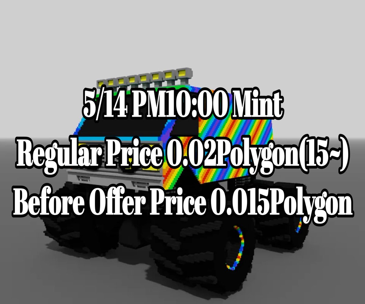 @harapei2 GぺM☀️ 雨も好きです☂️ 【新車納品のお知らせ MTV #003 】 前回と打って変わってヒッピー感のある虹仕様🌈Happy Hippie🤩 5/14 PM10:00 24時間限定プライス 0.015Polygon /15 PM10:00以降 0.02Polygonになります。この週末に新車を買いたい方はお早めに🚗ブルンブルン #nftart #voxelart #ボクセル