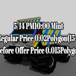 @hokkoriboy ホッコリボーイさんGM☀️昨日に引き続き宣伝☺️ 【新車納期は本日です】 ご好評いただいております🚗Monster Trucks Voxel🚗自信を持って世に送り出す3台目『MTV#003』🚗ブルンブルン 5/14 PM10:00〜 24H限定価格0.015Polygon(通常価格0.02Polygon) #NFTs #voxelart #ボクセル opensea.io/collection/mon…