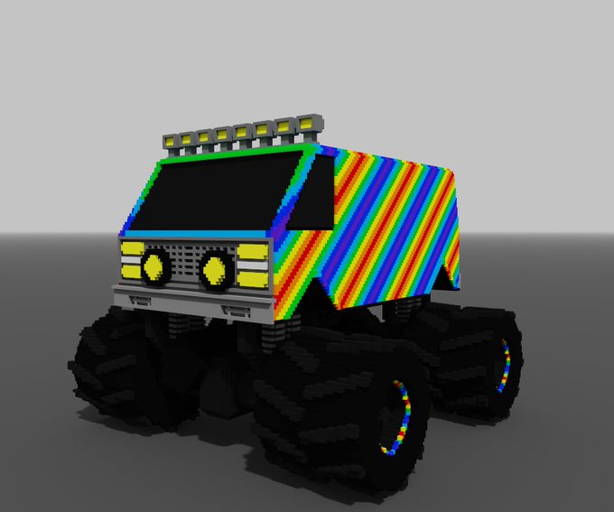 @Pam_Oikawa ぱむさんGM☀️ 星座系は優しいイメージ♈️ 僕のとは大違いww 【新車納品のお知らせ】 Black and Grey テイストのバチバチ系Monster Truck💀男らしさの塊野郎🚬 本日5/7 PM10:00 0.01ETH🚗ブルンブルン #NFTs #voxelart #ボクセル opensea.io/collection/mon…