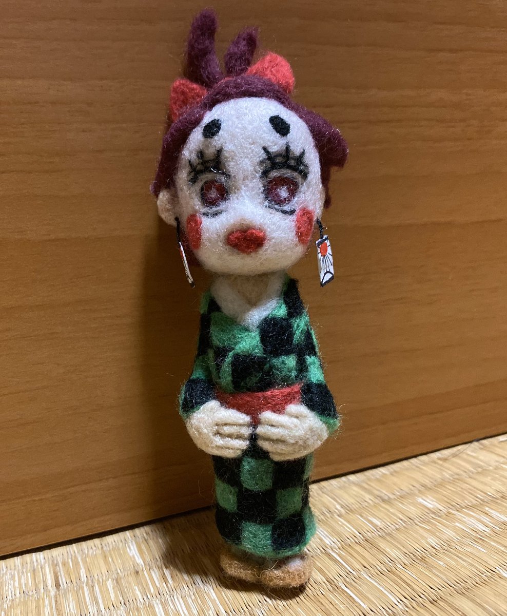 15 38 最近、TLに流れてくる『鬼滅の刃』が気になったので竈門炭治郎(炭子)を作りました。 女装してる方が面白そうだったから(´・ω・`) #羊毛フェルト #鬼滅の刃 #鬼滅の手芸部 19/10/13 20:05