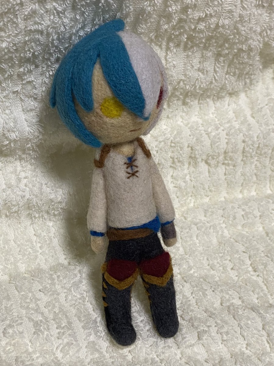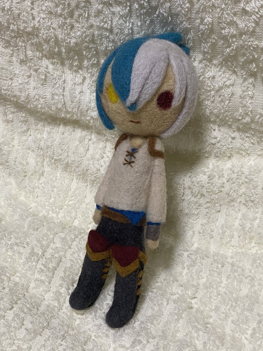 【エクス(リページ)】 フォロワー50人記念にリクエスト作品でオッドアイのリペス君を作りました!どちらの服装で作るか悩んで此方にしました。 ほんと💦 長い事お待たせしてしまい申し訳ございませんでした。 #羊毛フェルト #グリムノーツ #グリム手芸部