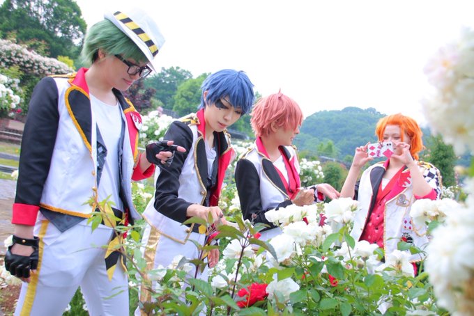 【cos/twst】 -- 赤く塗ろう ♥️りお ♠️ゆーり ♣️とうふ ♦️あやぽんぬ p📷 たすくさん(@tsk_cos ) #りおふぉる トランプ兵!♡