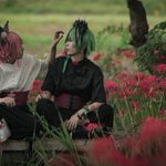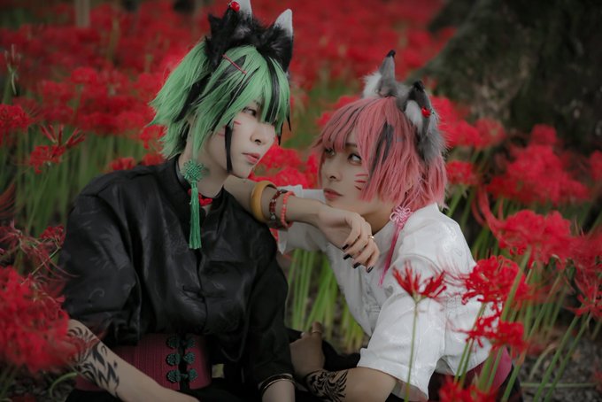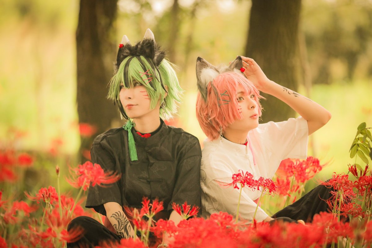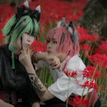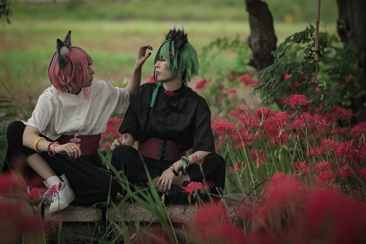2 4 【cos/創作狐②】 --- 💚🦊ゆーりちゃ p.イロワルさん(@irowaru1 ) #りおふぉる 作り物じゃない彼岸花あまりにも映え♡ 23/06/09 22:25