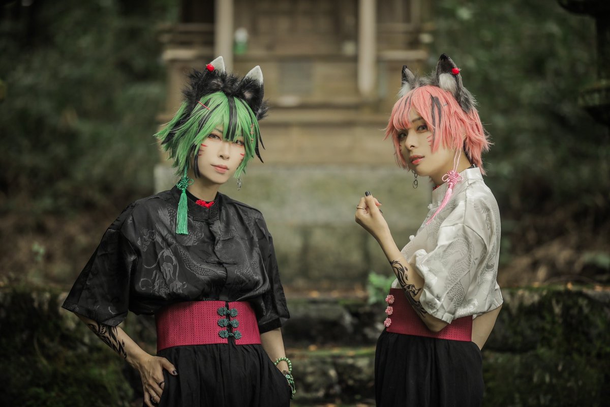 【cos/創作狐】 ---こんこん 💚🦊ゆーりちゃ p.イロワルさん(@irowaru1 ) #りおふぉる シンメ狐ちゃん