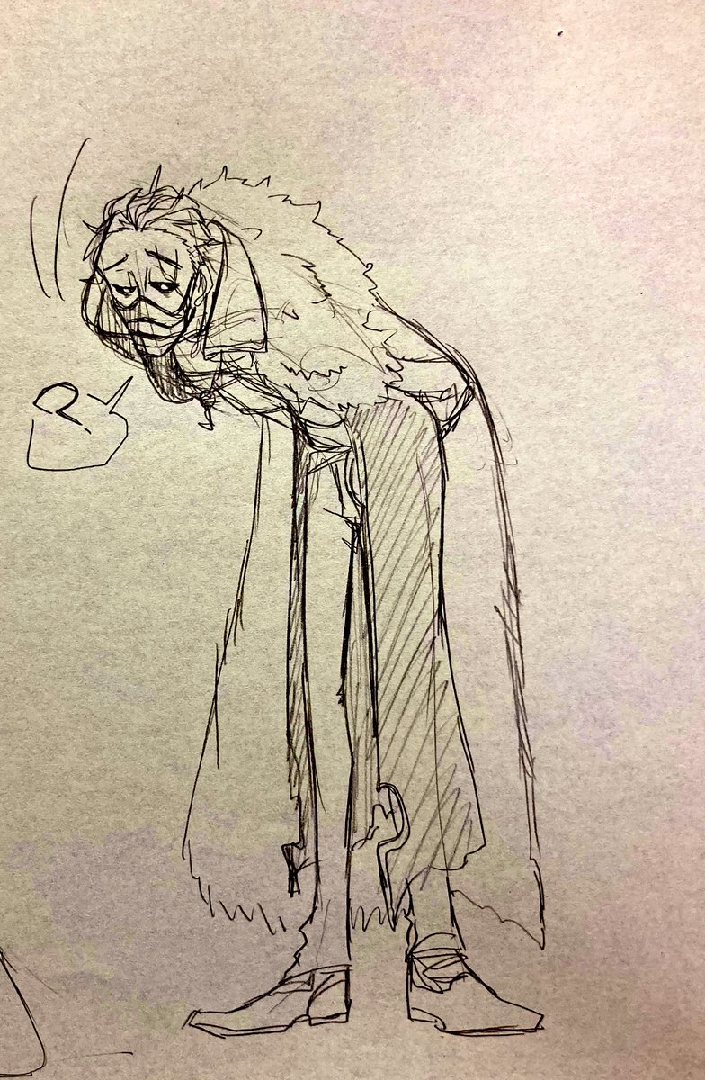 しゃがむという文化がないアルヴァさん。(初描きなので変だが許せ)