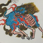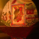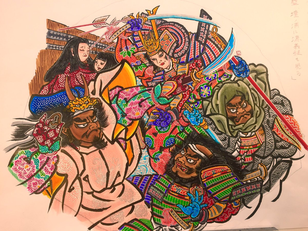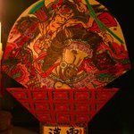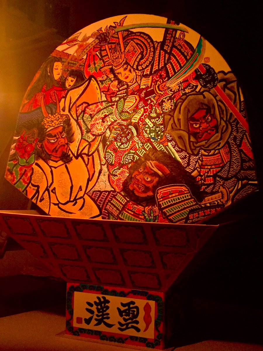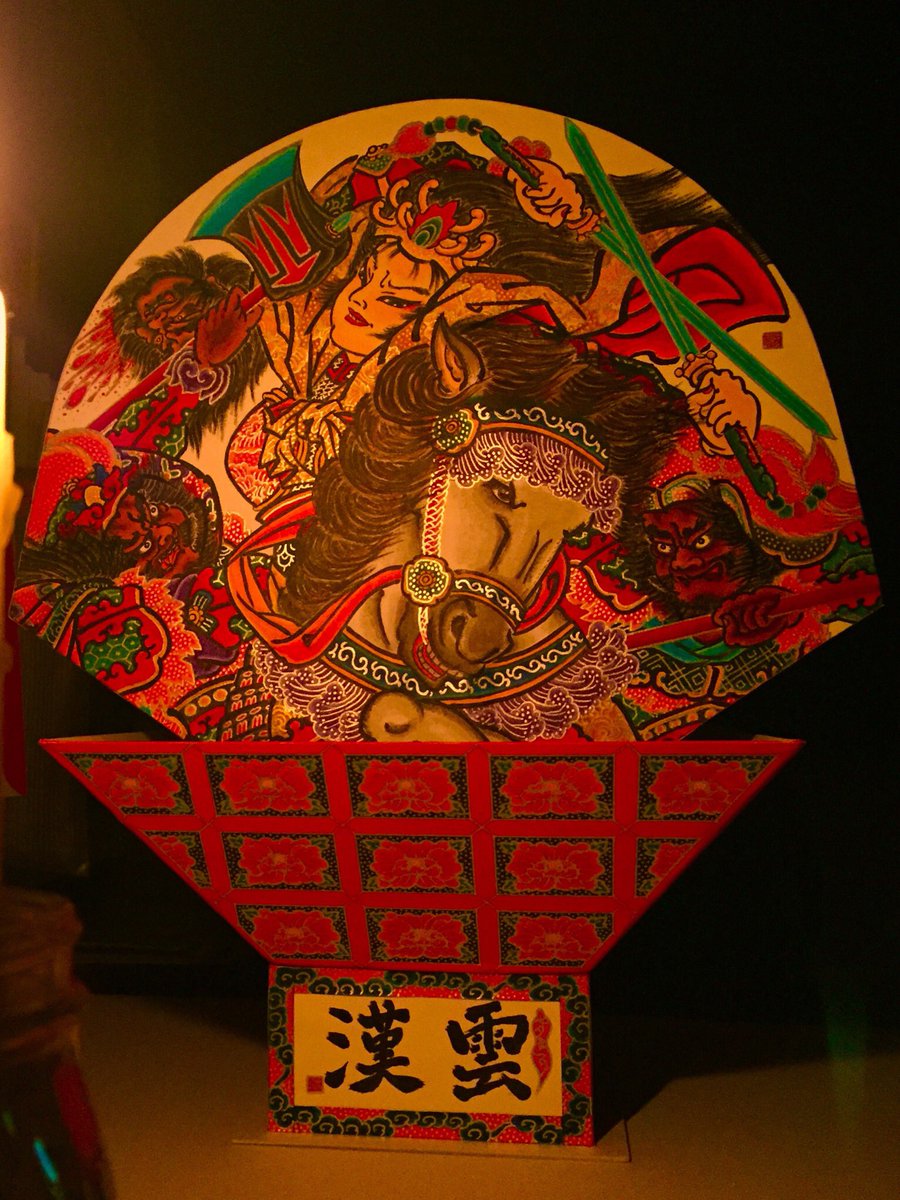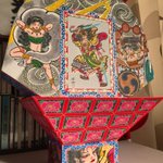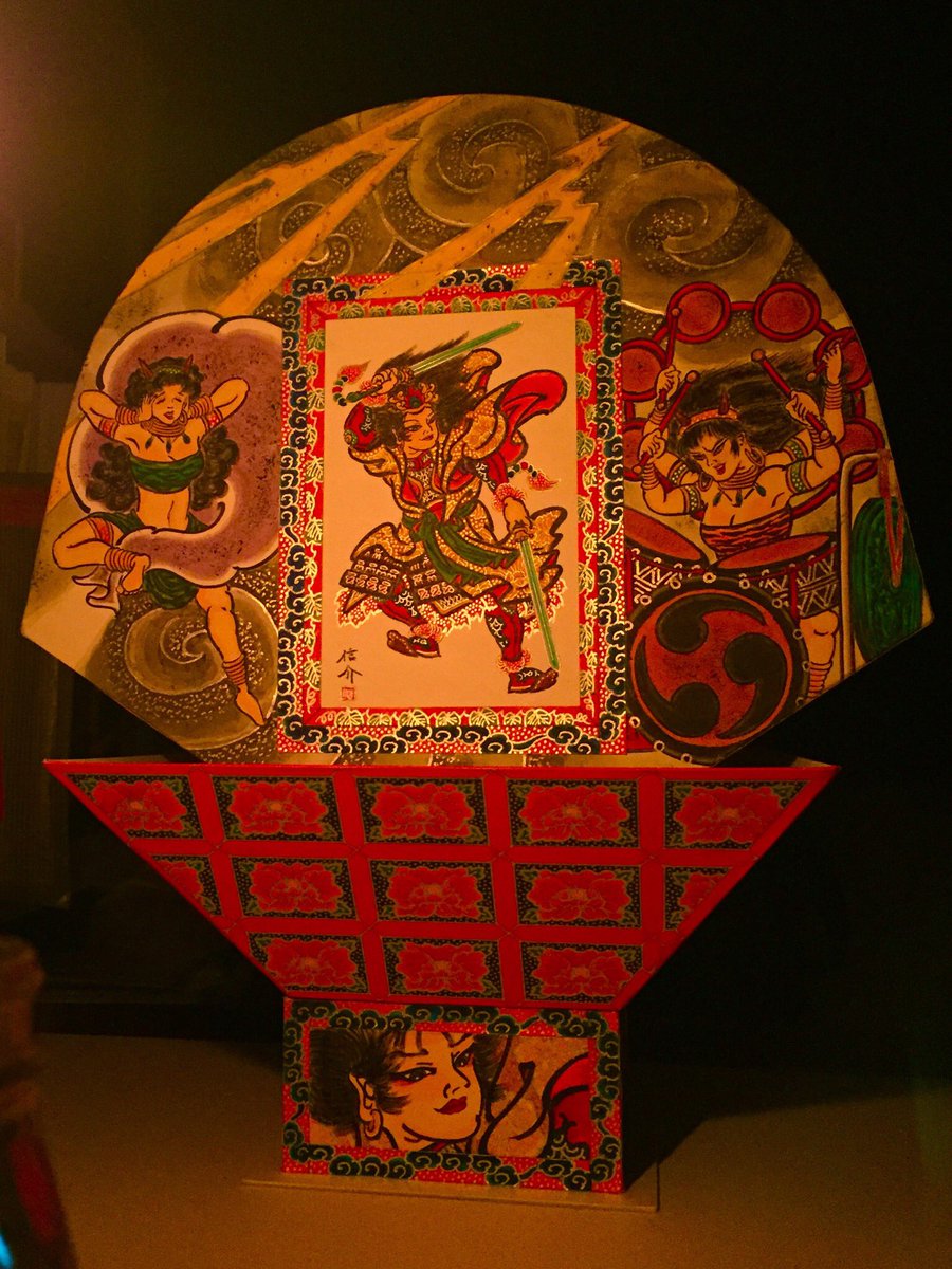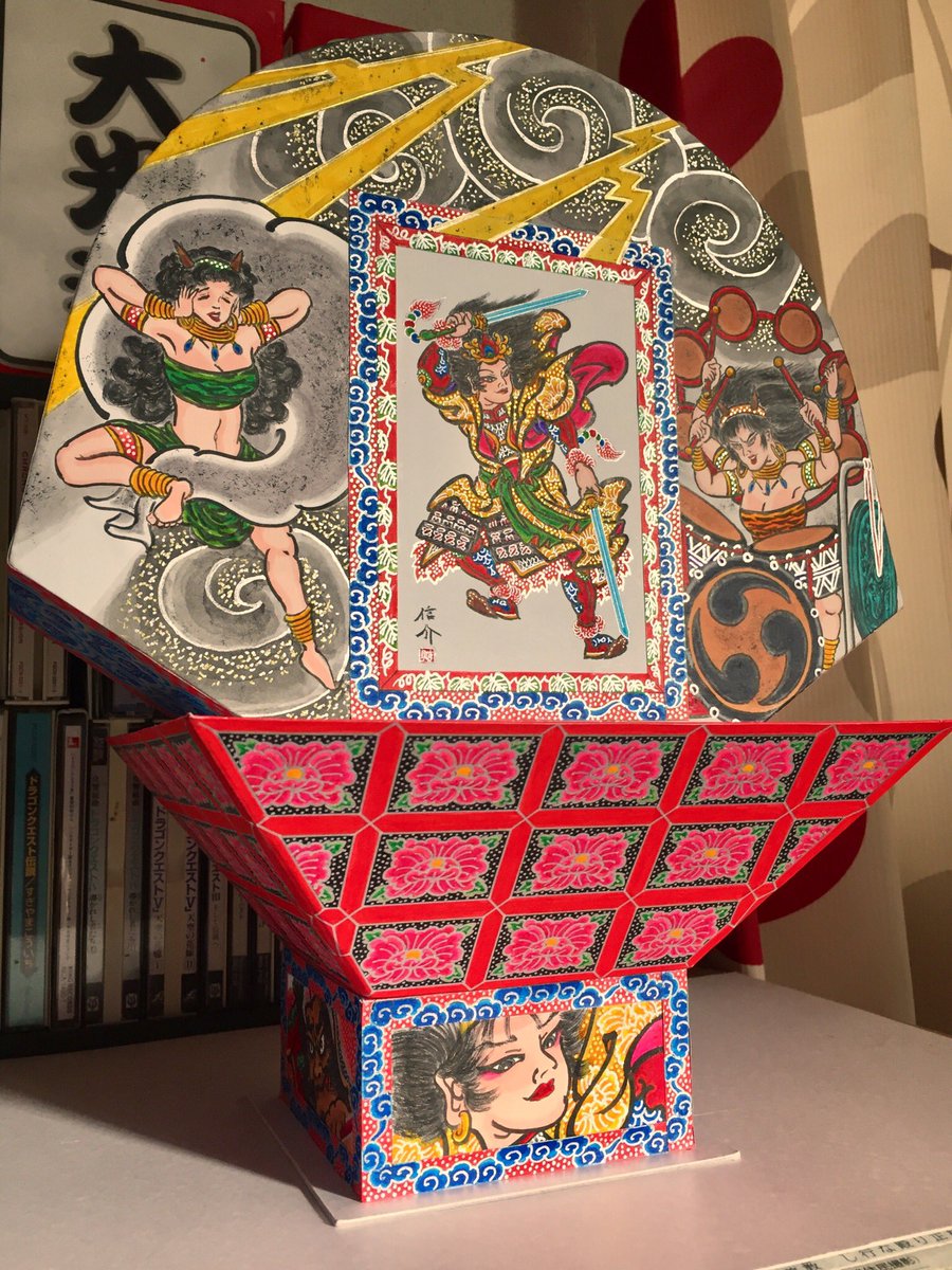 厚紙製ペーパークラフトねぷた 高さ33㎝ 幅28㎝ 奥行き21㎝ 扇厚み10㎝ 2019年10月完成 鏡絵「水滸伝 一丈青扈三娘、敵陣を駆ける」 見送り「一丈青扈三娘」 袖絵「女人風神雷神図」 #おうちでねぷたまつり #ペーパークラフト #ねぷた