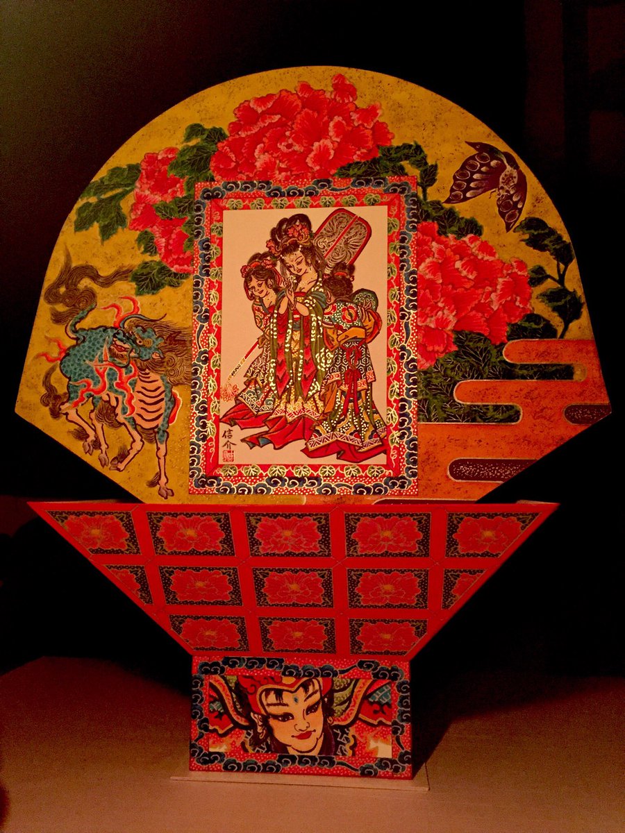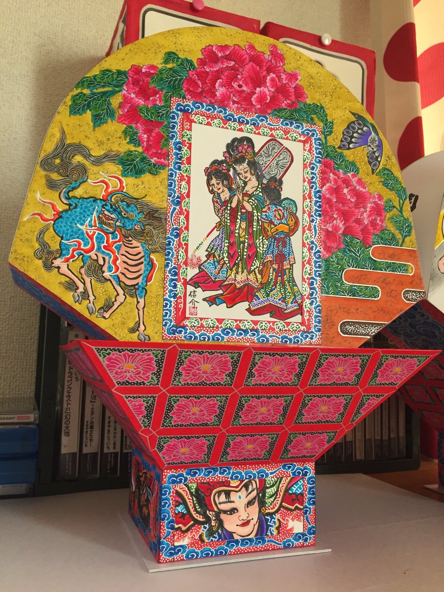 厚紙製ペーパークラフトねぷた 高さ33㎝ 幅28㎝ 奥行き21㎝ 扇厚み10㎝ 2020年4月2日完成 【疫病終息祈願】 鏡絵「鍾馗、疫病を祓う」 見送り「楊玉環」(楊貴妃) 袖絵「牡丹に麒麟、蝶」 #おうちでねぷたまつり #ペーパークラフト #ねぷた