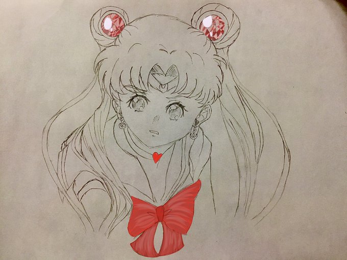 アナログですが………笑 こんな感じ? 初描きセラムン〜🌙 #sailormoonredraw #セーラームーンチャレンジ