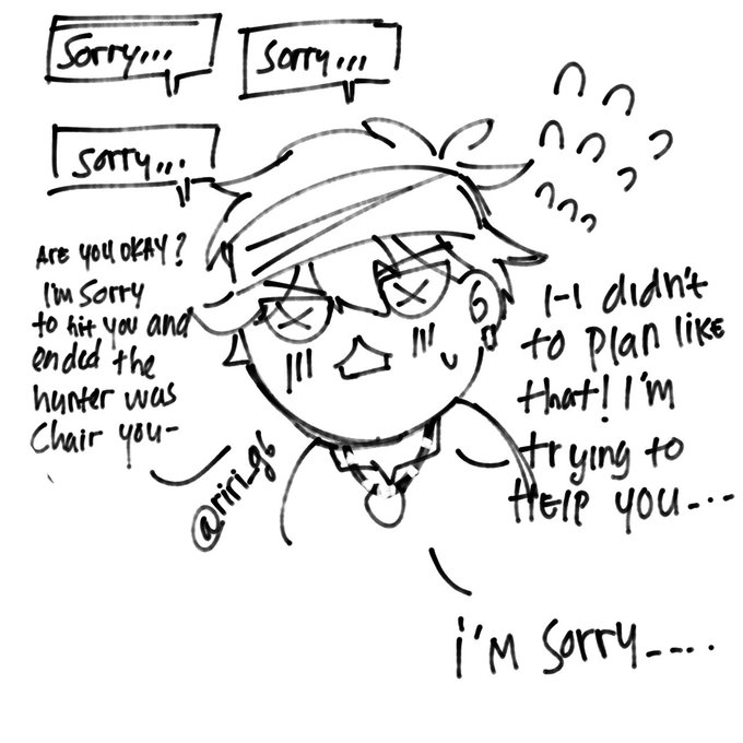 オフェバツ I remember when ganji trying to help me when i was "knock down" and he's fail to do that. And in end, he say "Sorry" in many time. I said "it's okay" when I was chaired. Haha-♡ #IdentityV #第五人格イラスト