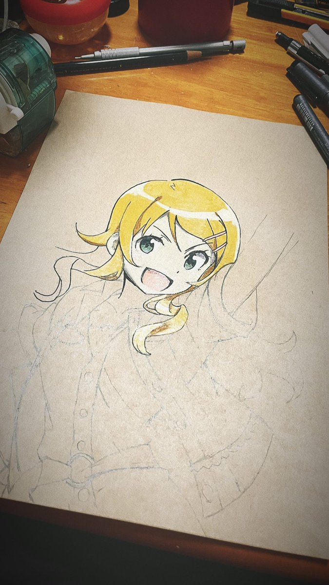 クラフト紙に書く時って、個人的に完成より、こういう一部だけ完成させる特殊な好みがあります #絵描きさんと繋がりたい