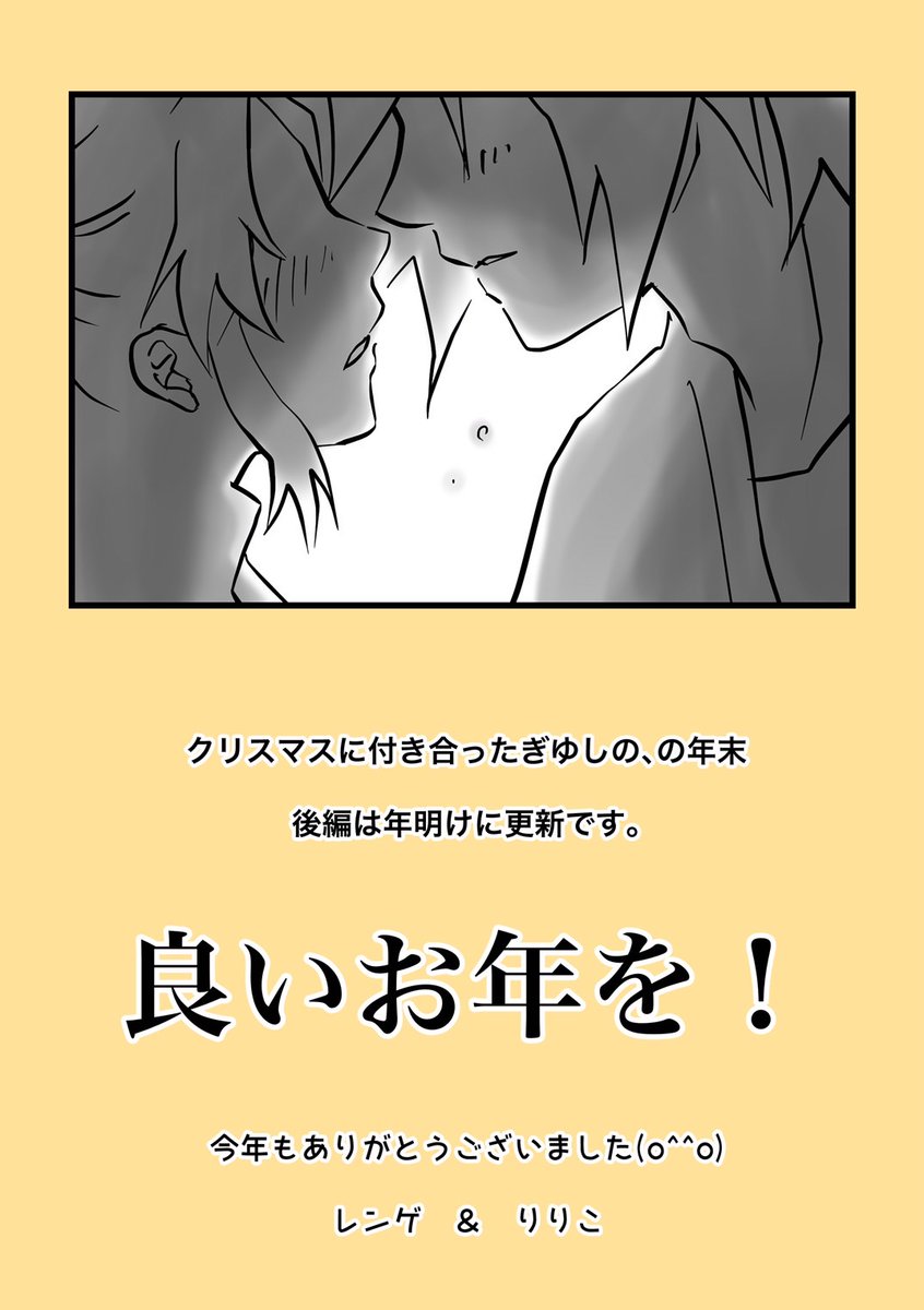 💙💜クリスマスに付き合ったぎゆしの、の年末💙💜 後編の予告漫画です! まったりおうち年末デートの🌊🦋に進展はあるのか……!??😊 後編は年明けです。 皆様、良いお年をお迎えください🎍✨ twitter.com/renge_53/statu…
