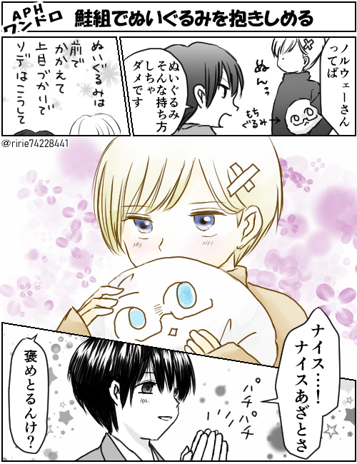 5 40 鮭組でぬいぐるみを抱きしめる @APH1draw #APHワンドロ 22/01/18 23:02