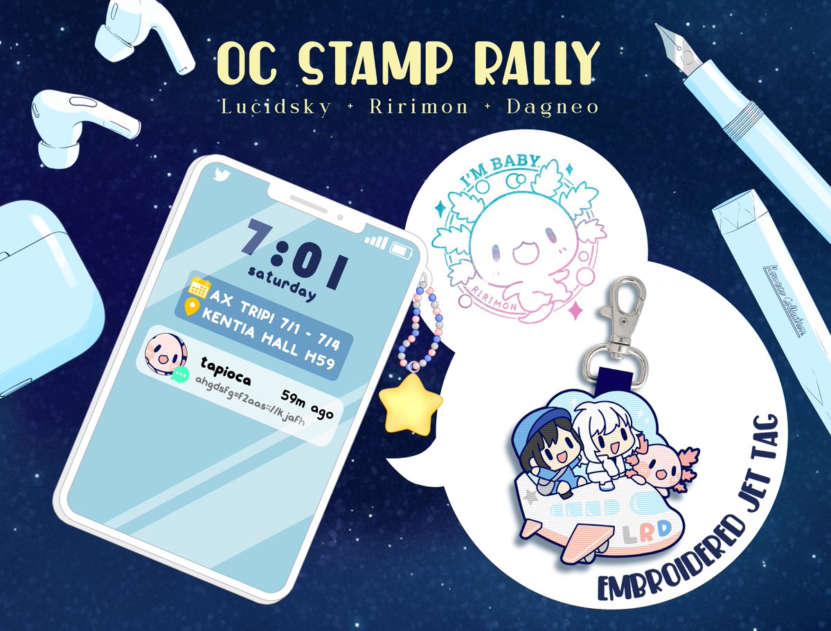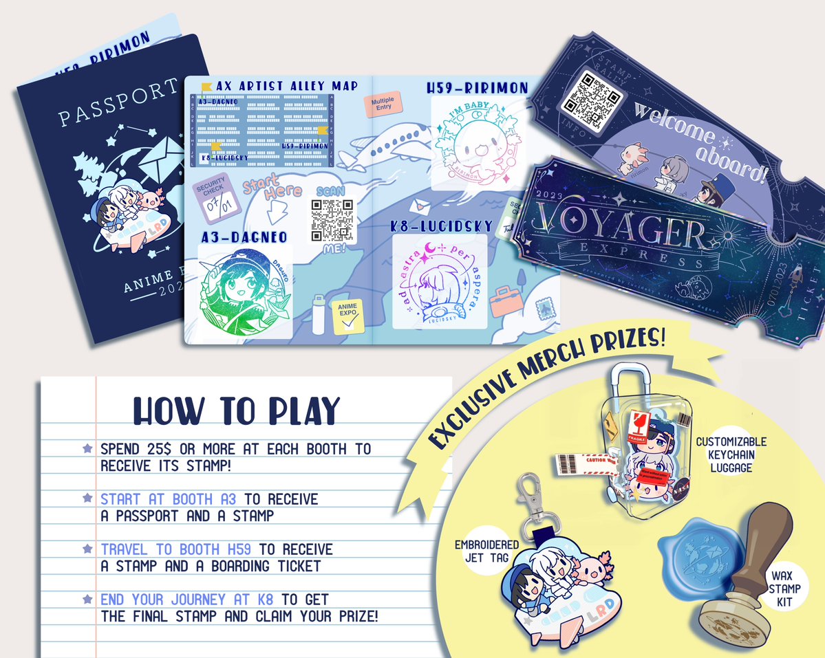Join me, @dddagneo, and @Lu_cid_sky for a travel-themed stamp rally at AX! ✈️🗺️ This is a collaborative project featuring our OCs & exclusive merch. #AXPassportRally ✦ Task ➝ collect 3 stamps ✦ Reward ➝ merch prize pack ✦ Flight Path ➝ A3, H59, K8 lrd-rally.carrd.co