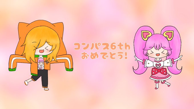 6周年お祝いでフリーアイコン描いてみました!⸜( ᐛ )⸝ご自由にお使い下さい! アイコンに設定すると画質悪くなっちゃいますが…(:3_ヽ)_ #コンパスお絵描き