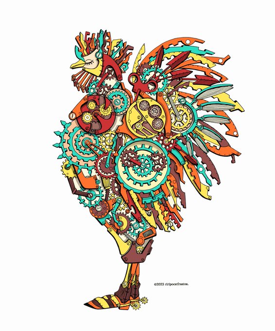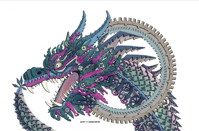 おはようございます(о´∀`о) せっかくの休みなのに風邪を ひきました( ; ; ) 市販薬でなんとか乗り切ります🤧 ⚙カルタノサウルス⚙原画 #スチームパンクイラスト #歯車イラスト #ペン画 #カルタノサウルス #絵描きさんと繫がりたい