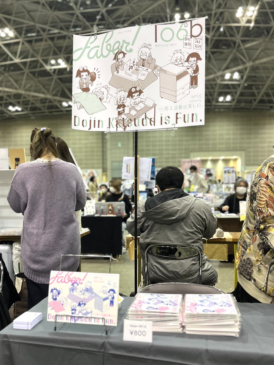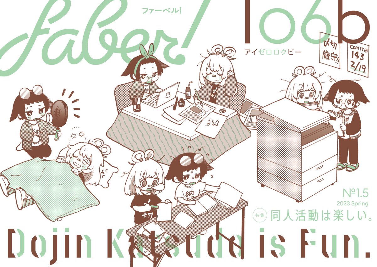 開場しました。よろしくお願いいたします! #COMITIA143 東京ビッグサイト[I-06b] faber! no. 1.5 特集=同人活動は楽しい。 800円/A5/24P/リソグラフ2C カバーイラスト:るぅ1mm