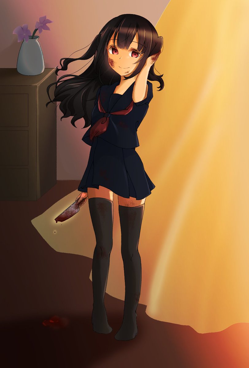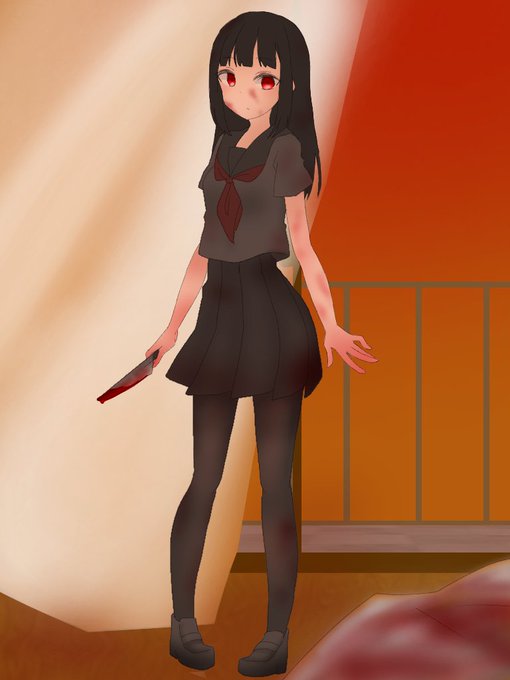 昔描いた絵のリメイク! ⚠️流血描写あり⚠️ 左が2018年7月で 右が2020年6月 赤目、黒髪、セーラー服は変えずに表情と背景もちょっとだけ変更 ちなみに後付けですが、後ろのピンクの花はキョウチクトウってことにして下さい! #創作イラスト #私の絵柄が好みって人にフォローされたい
