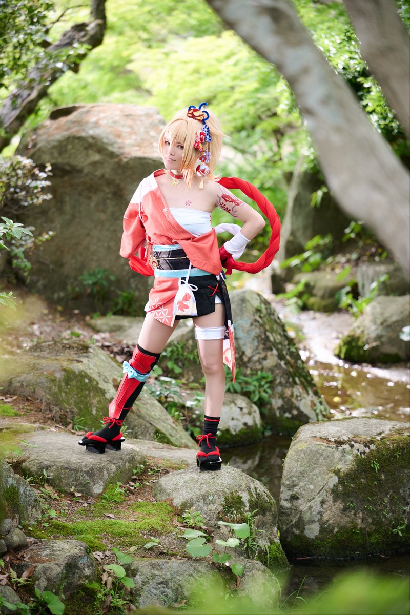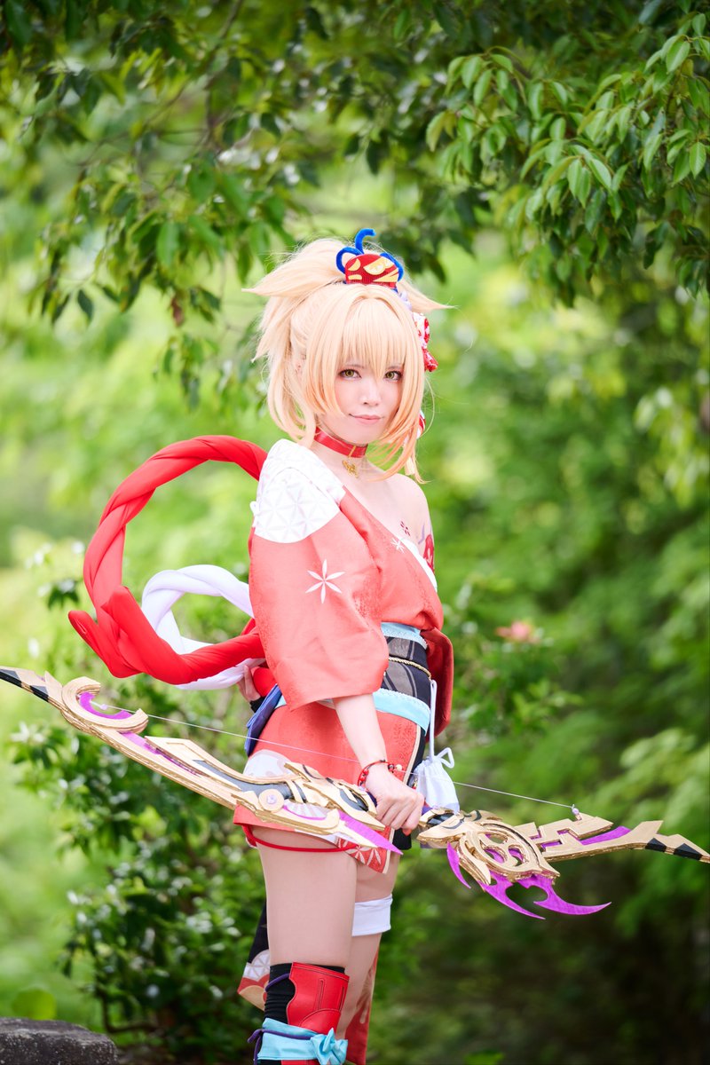 ⚠︎コスプレ / cosplay 原神 / Genshin Impact 九条裟羅 / Kujou Sara 鳴神島と海祇島が友好関係を結んだ今、 皆が友人だ。 ゴロー:ちさゆちゃん(@Chisayu_ ) #こすおん #山崎八幡宮 #GenshinImpactcosplay
