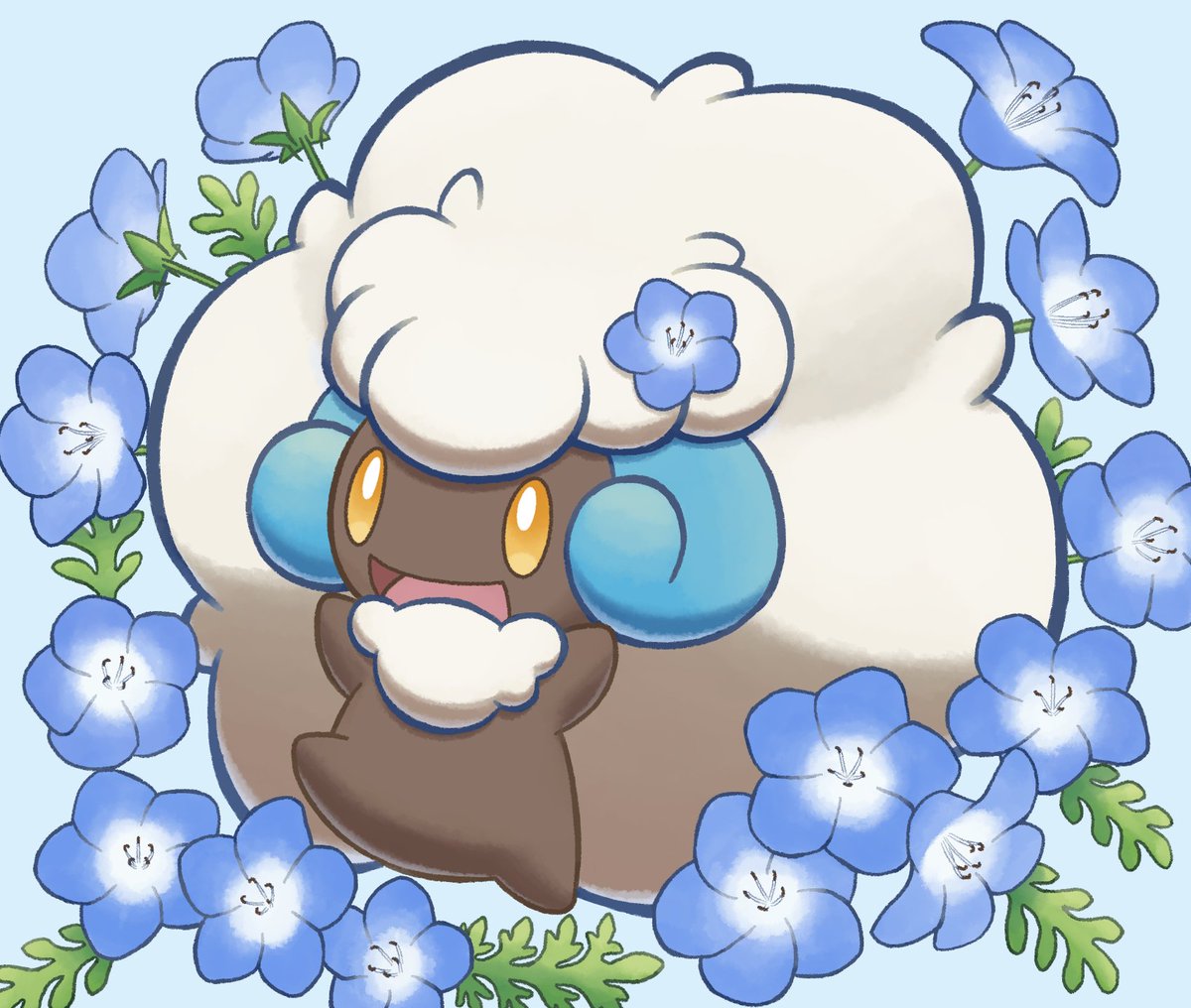 75 256 #ポケモン #エルフーン #イラスト エルフーンとネモフィラ・ω・ 22/03/16 12:17