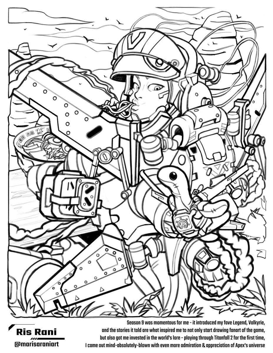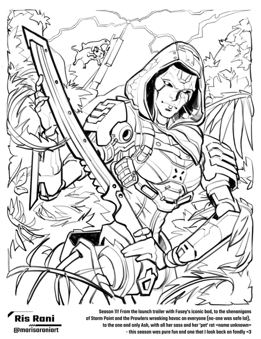 here are the final pieces! ✨ there's write-up too, bc this game has meant so dang much to me over the years 😌 #ApexLegendsFanart #seasonofnessie2 grab your copy of the colouring book in the reply below! 👇