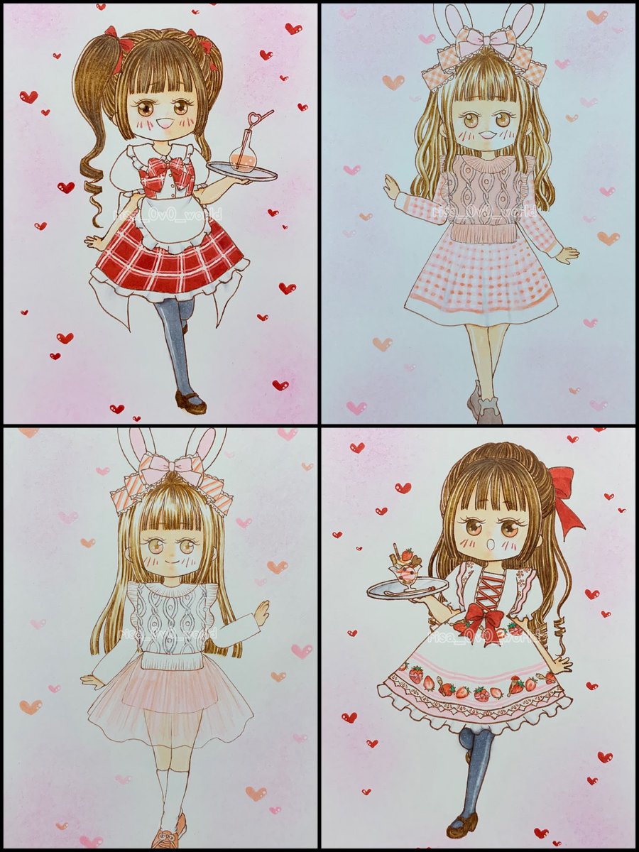 #私の個性はきっと誰かにささる Instagramの3つ並びの投稿スタイルを受け、左右が対になるようなイラストをよく描いてます🎨🎶 甘ロリやガーリーなお洋服が好きです💖 どうか誰かの心にささりますように(人˘︶˘*)°.+ #冬の創作クラスタフォロー祭り #みんなで楽しむTwitter展覧会