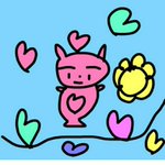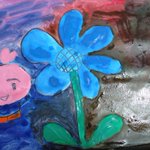 0 4 #イラスト #絵の具 #ゆるい 青い花とハートちゃん(≧▽≦) 22/06/14 15:03