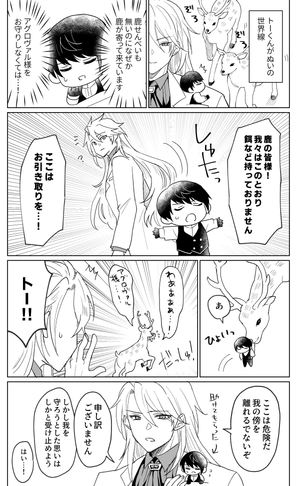 お題箱でさまざまなトーくんシチュエーションを頂いたんですけど、とりあえず関西人なので奈良の鹿に攫われるトーくんを描きました!(攫われやすいようにぬいになってもらいました!)リクエストありがとうございます!