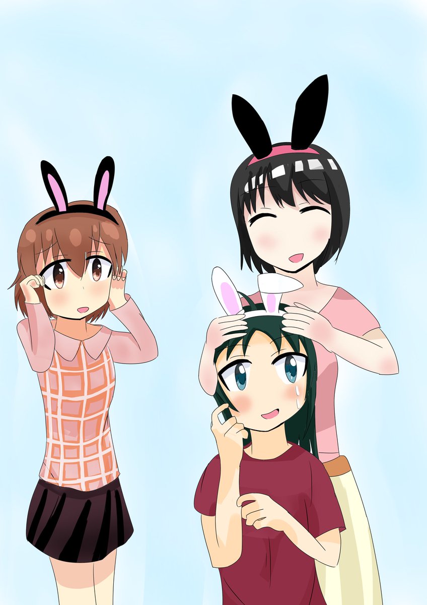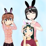 お題箱から「うさ耳ジョイフルデイズ」です〜! SS3Aの3周年には遅刻したけど頑張って描いたよ! お題ありがとうございました! #喜多日菜子 #南条光 #鷹富士茄子 #ジョイフルデイズ
